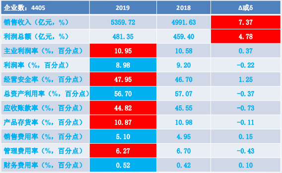 11個經(jīng)濟(jì)運(yùn)行指標(biāo)中:銷售收入、利潤總額、主業(yè)利潤率、經(jīng)營安全率、應(yīng)收賬款率、產(chǎn)品存貨率和管理費(fèi)用率好于上年同期;其余4個指標(biāo)差于上年同期。