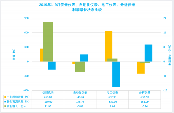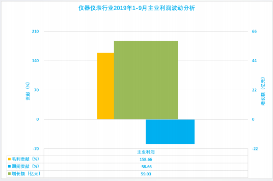 1.3.1 儀器儀表行業(yè)2019年1-9月主業(yè)利潤波動分析
