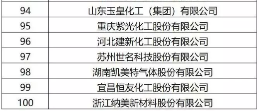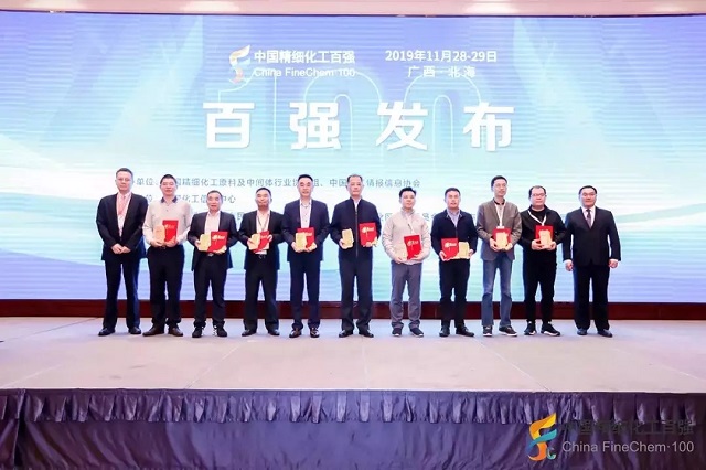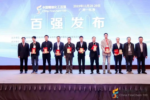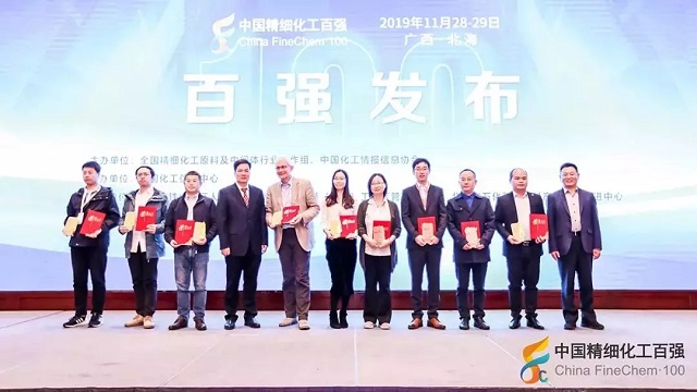 2019年11月28日,在由全國精細化工原料及中間體行業(yè)協(xié)作組、中國化工情報信息協(xié)會在廣西北海聯(lián)合主辦,中國化工信息中心承辦,北海市鐵山港區(qū)人民政府、北海市鐵山港(臨海)工業(yè)區(qū)管理委員會協(xié)辦的“第十九屆國際精細化工原料及中間體(鐵山港)峰會暨2019中國精細化工百強發(fā)布會”上,公布了“2019中國精細化工百強”榜單。