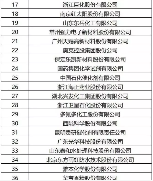 附“2019精細化工百強”名單: