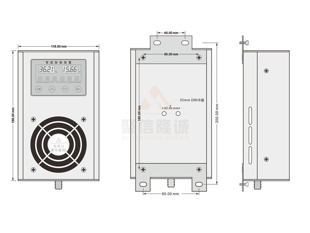 3、除濕風道主動引凝、排出氣體加熱降濕,有效達到了對電氣柜密閉空間防潮除濕的綜合治理;