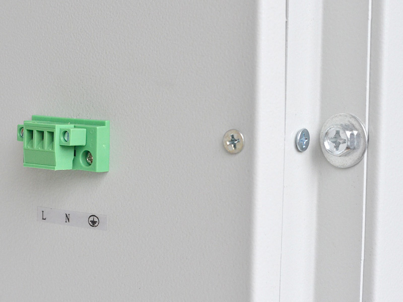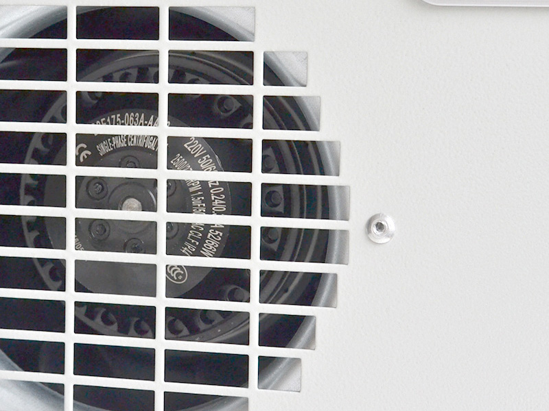 空調(diào)器內(nèi)循環(huán)的風(fēng)扇從上部吸入熱空氣,使空氣不斷通過蒸發(fā)器的翅片進(jìn)行熱交換,并將放熱后變冷的空氣從下部排出空調(diào)器,并送向柜內(nèi)。如此柜內(nèi)空氣不斷循環(huán)流動,達(dá)到降低溫度的目的。同時(shí),外部循環(huán)的風(fēng)扇從下部吸入外界冷空氣,經(jīng)過熱交換后熱空氣從上部排出空調(diào)器。